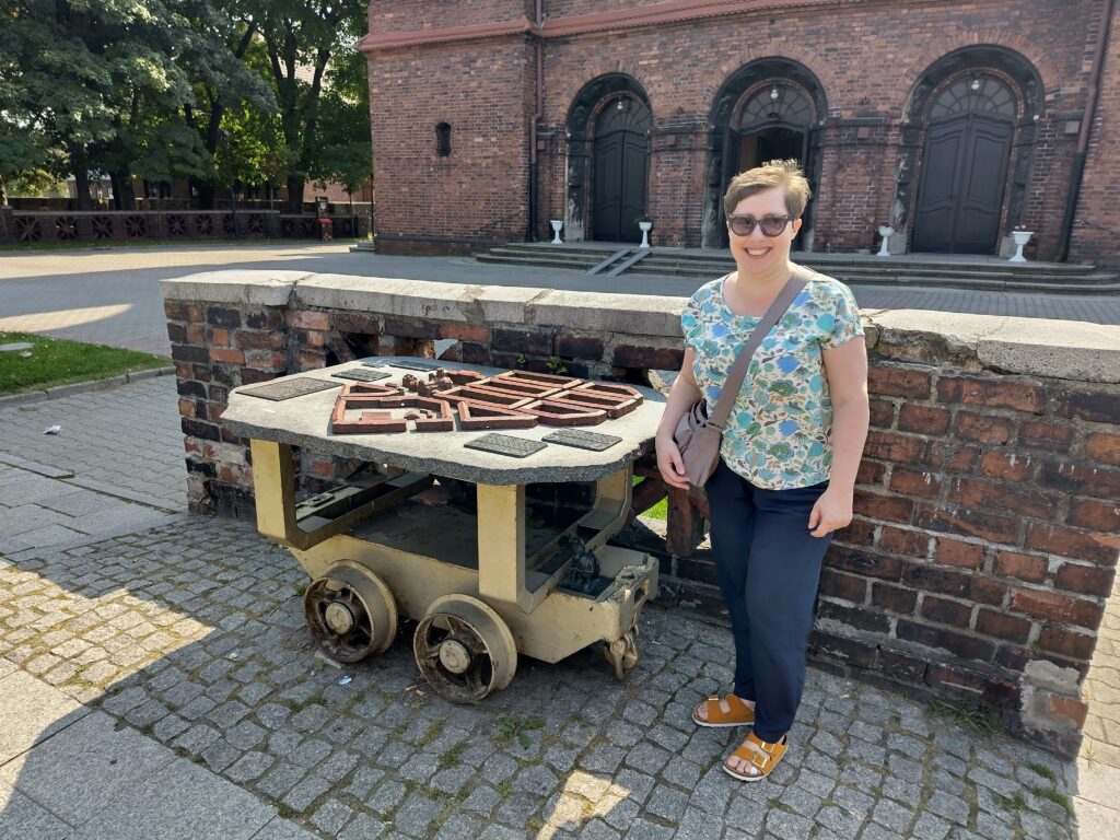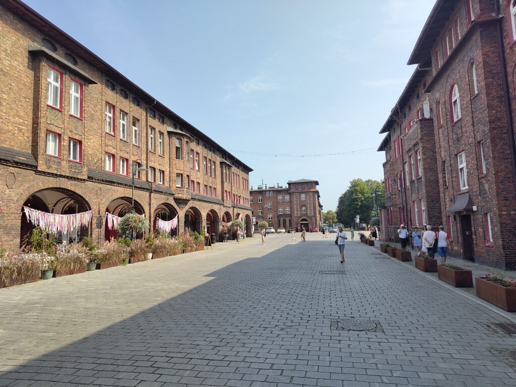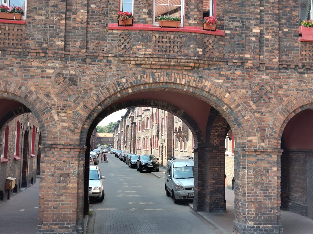 Am Samstag, den 16.08.2025, ist es immer noch sehr heiß und wir fahren gemeinsam mit unserer Freundin nach Nikiszowiec, einen etwas abseits gelegenen Stadtteil von Katowice (nicht mit Giszowiec verwechseln). Diese Wohnsiedlung (wie auch Giszowiec) wurde für die Bergleute der Gieschegrube Anfang des 20. Jahrhunderts gebaut, da die Eigentümer der Grube der Meinung waren, dass Arbeiter, die sich keine Sorgen um die Wohnsituation ihrer Familien machen müssen, effizienter arbeiten.