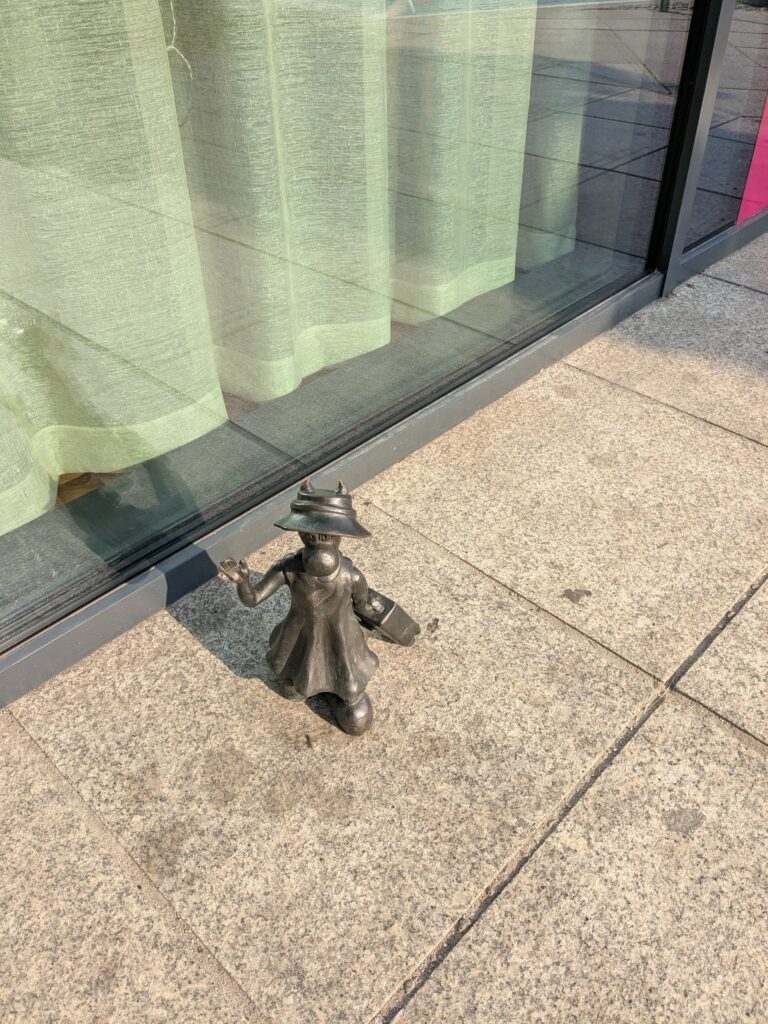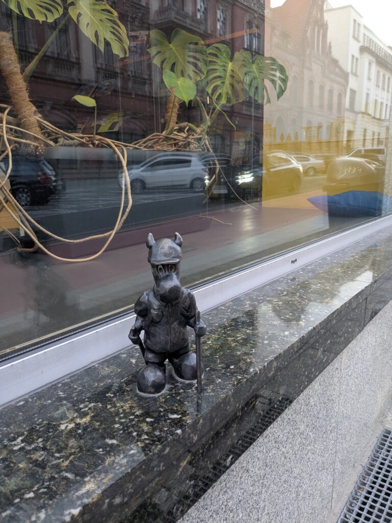 Wir gehen eine Kleinigkeit essen und in die Galeria Katowicka einkaufen (wir wurden gebeten, Kinderbekleidung für zwei ukrainische Buben zu kaufen – bei den polnischen Marken Smyk und Reserved werden wir schnell – und günstig – fündig). Mineralwasser kaufen wir in einem der unzähligen Żabka (kleiner Frosch)-Shops, die auch sonntags und an Feiertagen offen haben.