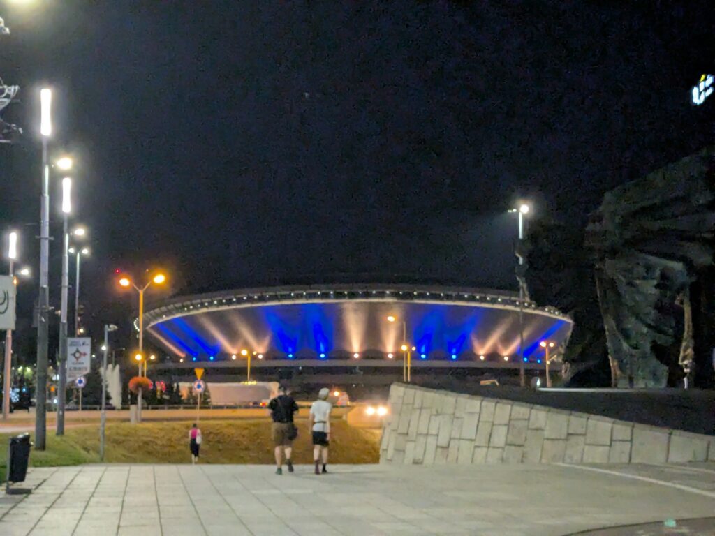 Am Freitag, den 15.08.2025, werden wir am Vormittag abgeholt und spazieren – diesmal in der brühenden Hitze – den gleichen Weg wie am Vorabend, vorbei an der „Untertasse“, Richtung Schlesisches Museum (Muzeum Śląskie). (Mehr zu Gwiazdy unter dem Link im Foto – nur auf Polnisch)
