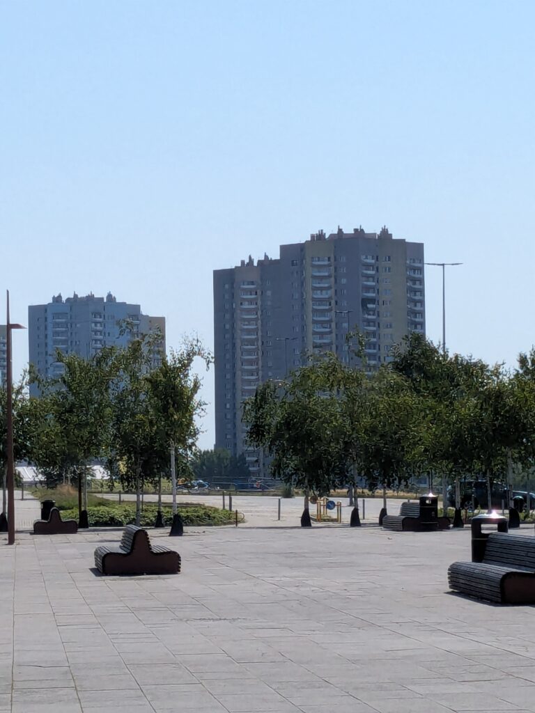 Am Nachmittag verlassen wir Katowice Richtung Chorzów (vorbei an noch einem Beispiel des polnischen Wohnbaus – diesmal der 80er Jahre -, der liebevoll Kukurydze – Maiskolben – genannt wird). Bei der Recherche für den Ausflug ist mir dieser „Fehler“ unterlaufen: Ich habe Katowice einzeln betrachtet und die anderen Städte der GZM-Metropole (wie Chorzów) außer Acht gelassen, obwohl sie relativ nah aneinander liegen. Hätte unsere Freundin nicht darauf bestanden, nach Chorzów zu fahren, um in den Park Śląski (Schlesischer Park) zu gehen…