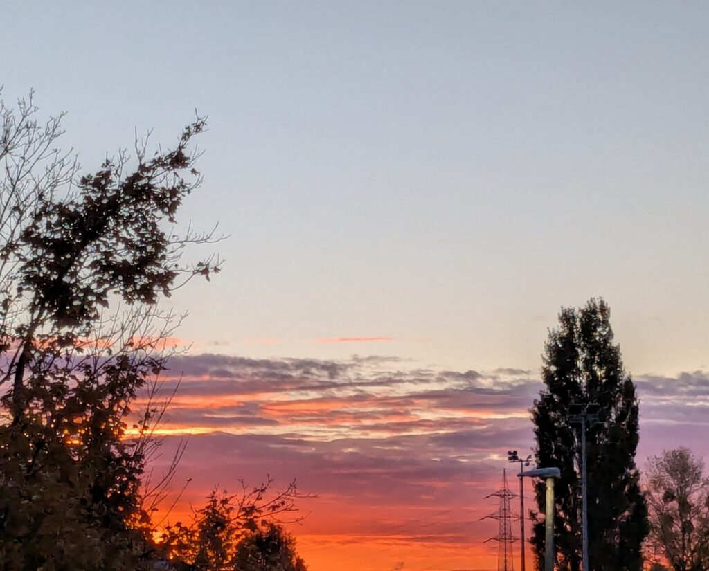 - Zeitumstellung (2): Dank der Zeitumstellung kann ich in der Früh wieder die wunderschönen Sonnenaufgänge bewundern (die im Sommer angeblich auch so schön sind, nur dann stehe ich nicht so früh auf, um sie sehen zu können ;-)).