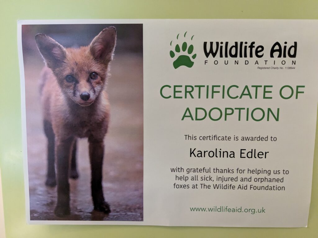 Und mein Geburtstagsgeschenk 2025 war wiedereinmal eine Fuchs-Patentschaft bei der Wild Life Aid Foundation.